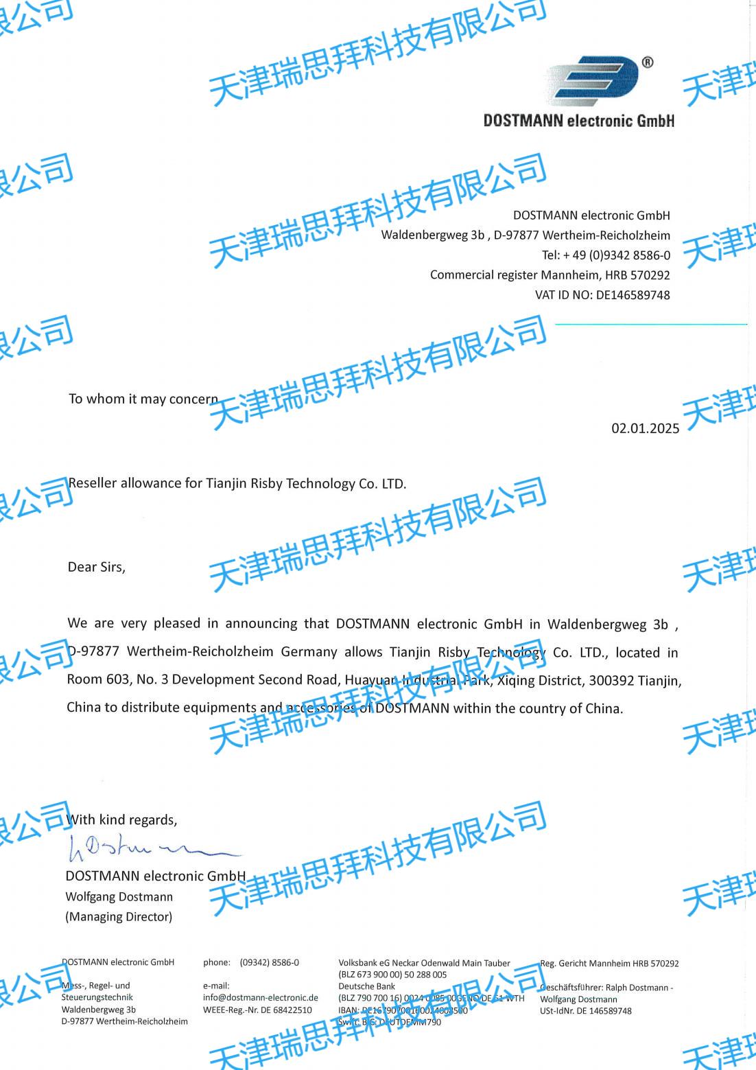 近日,天津瑞思拜科技有限公司(以下簡稱“瑞思拜”)欣然宣布正式成為德國DOSTMANN公司的授權(quán)代理商。這一合作標(biāo)志著瑞思拜在全球市場布局中的又一重要進(jìn)展,將為國內(nèi)客戶提供更為先進(jìn)和高質(zhì)量的測量儀器與解決方案。