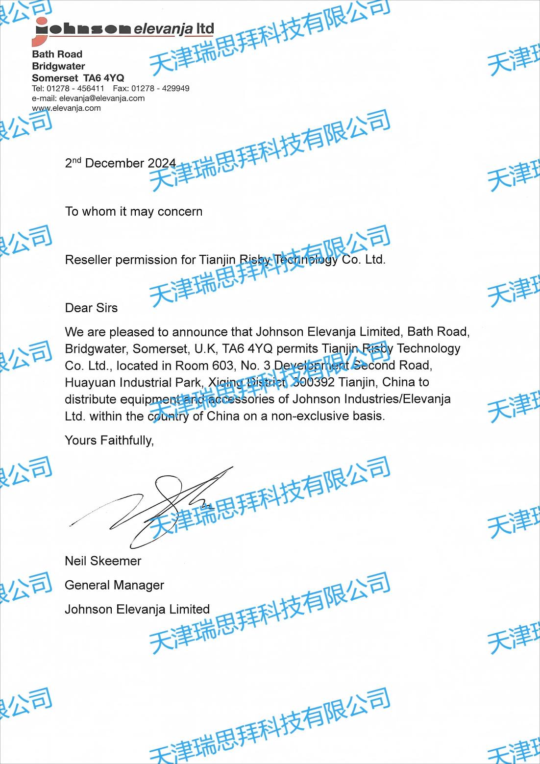 天津瑞思拜科技有限公司是Johnson Industries正式授權(quán)代理商,對Johnson Industries的所有產(chǎn)品有銷售權(quán),歡迎咨詢。